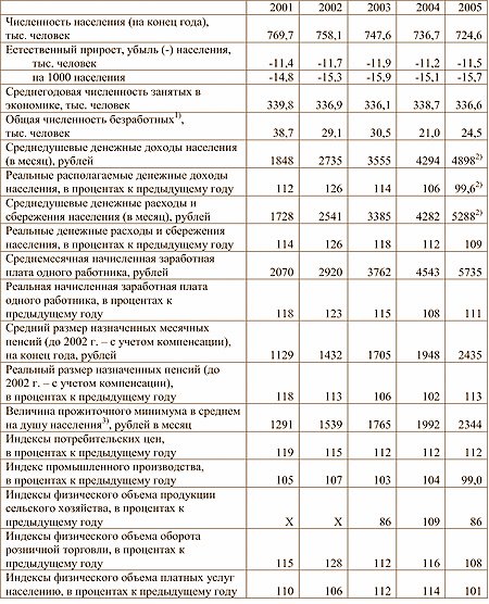 В период с 2001 по 2005 годы в сельскую местность прибыло 23,4 тыс. человек 1), выбыло 24,4 тыс. человек 1).
