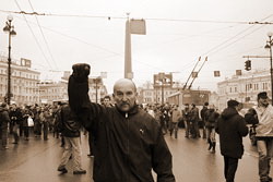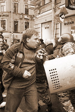 Во время «Марша несогласных» мне лично пришлось наблюдать провокацию, впоследствии растиражированную федеральными СМИ. Я видел, как через ОМОН прошел молодой человек, развернул плакат «Березовский мы с тобой» и стал позировать перед камерами 5-го канала петербургского телевидения. Я его заметил, я стал показывать на него, сказал, что он провокатор, - и тут омоновцы тут же расступились, и он исчез. Но дело было сделано – его показали по ТВ.