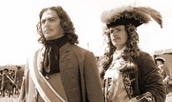 Фильм тем и хорош, что актеры здесь не «замылили» взор, переходя из одной широкомасштабной российской картины в другую. Пусть Дмитрий Миллер неуловимо похож на Орландо Блума (Orlando Bloom), а Родион Юрин, сыгравший графа де Гриша, прямо Джонни Депп (Johnny Depp), зато свои – доморощенные, а потому приятно родные. Бухаров, который сурово помалкивал в «Волкодаве», здесь весь фильм напротив, задорно бодрился, то констатируя факт «вьется вокруг тебя мошка в черном плаще», то задаваясь вопросом: «де Брезе, у вас там (во Франции) бабы есть?»