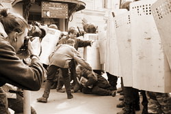 На самом деле у автора этих строк шокировавшие многих сцены 15 апреля (как и 3 марта, во время предыдущего марша) особого изумления не вызвали. Слишком хорошо памятны аналогичные картинки в братской Беларуси – 1996 год, 1997, 2006, 2007… «Космические войска», не пропускающие мирных граждан пройти по своим делам в центре города, объясняли, что проводится «спецмероприятие на режимных объектах» - в Минске буквально только что, 25 марта, я слышала эту формулировку, когда людей не пускали на Октябрьскую площадь….