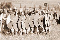 Наконец, самое горячее – стенка на стенку. Четыре раза. Разным строем. Разной атакой. С разной защитой. Всего две минуты на раз. И – вопли победы. Поднятые в торжестве щиты и топоры. «Наши победили!!!» И – хохот тысячной толпы. Все тут наши. Чужих нет. Все – родные.