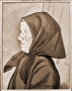 Разумеется, и речи нет о том, что воплощение человеческого образа даётся художнику труднее и не столь полно, как образы природы. Дело здесь в самом характере той пластической (и психологической) трактовки человека, которая присуща автору. Оссовский идёт к человеческому образу всегда через рисунок, через внешнюю телесную форму. Художник приближается к портрету (к раскрытию бессмертной души, её сущности, которое в результате и происходит) как бы из тотального пейзажа. Для Оссовского (очень сильного рисовальщика) нет чёткой границы между материальными формами мира – будь то земной рельеф или морщины на лице портретируемого.