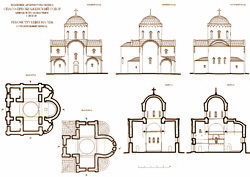 | Спасо-Преображенский собор. Графическая реконструкция первого строительного периода (первоначальный замысел). В. Е. Никитин, Д. В. Борисенко. |