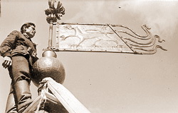 | Установка прапора на Власьевской башне, примерно 1967 г. Автор фото неизвестен. |