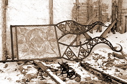 Среди утрат минувшего пожара в Псковской крепости [ 1 ] – прапоры Власьевской башни и башни над Святыми воротами работы архитектора-реставратора и кузнеца Всеволода Петровича Смирнова. Они сильно пострадали в пламени (особенно прапор Власьевской башни), упали в самое пекло, но были найдены. Вопрос их воссоздания оказался весьма сложен: нужны мастера ковки, способные встать вровень со Смирновым, воплотить заново его замысел.