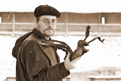 | Дмитрий Смирнов, сын Всеволода Смирнова, держит в руках голубя с прапора Власьевской башни. 28 апреля 2010 г. Довмонтов город. Фото: Лев Шлосберг |