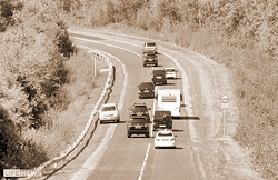 (Мы поехали. До ближайшей остановки осталось километров 70.)