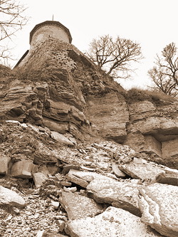 Тут надо принять во внимание двойственность проблемы: с одной стороны, гора рушится, ближайшие к обрыву монастырские строения, возможно, под угрозой. Бесспорно, мероприятия по укреплению береговой линии необходимы.