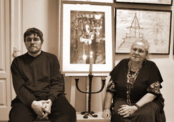 Наталья Сергеевна Рахманина и Дмитрий Всеволодович Смирнов, супруга и сын В. П. Смирнова, на открытии выставки «Радость у Покрова». 21 января 2011 г. Фото: Лев Шлосберг
