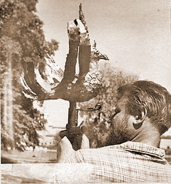 Всеволод Петрович Смирнов с птицей прапора Власьевской башни. Фото М. И. Семенова, 1966 г.