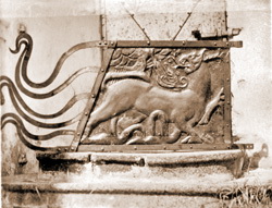 Полотнище прапора Власьевской башни. Лицевая сторона 1: Барс-победитель. Автор В. П. Смирнов. Фото М. И. Семенова, 1966 г.