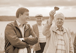 В разговор вступил заместитель губернатора Максим Жаворонков, курирующий в администрации все правовые вопросы: «На памятник нет паспорта, соответственно, памятник есть, но его границы не установлены. В постановлении областного Собрания есть формулировка «на берегу Себежского озера», но таких мест много и говорить о том, что именно здесь находится культурный слой, который требует особого исследования, с юридической точки зрения затруднительно». И заместитель губернатора, не выпуская из рук, iPad, сделал круговое движение головой, обводящее долгую и прекрасную, как вечный покой, панораму Себежского озера.